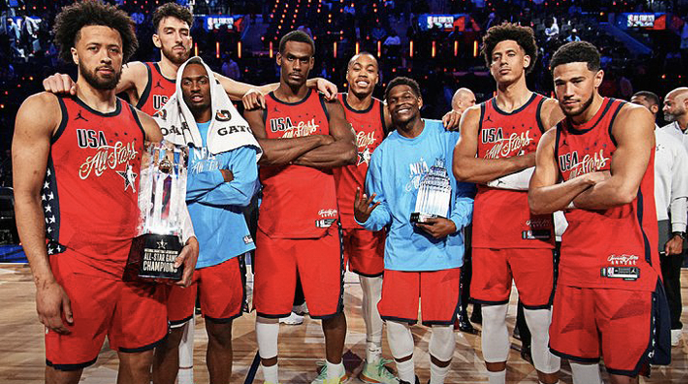 El cuarto formato del Juego de Estrellas de la liga en cuatro años enfrentó a dos equipos de All-Stars estadounidenses contra un equipo que representa al resto del mundo, con la esperanza de avivar la pasión nacionalista de jugadores y aficionados en un año olímpico.