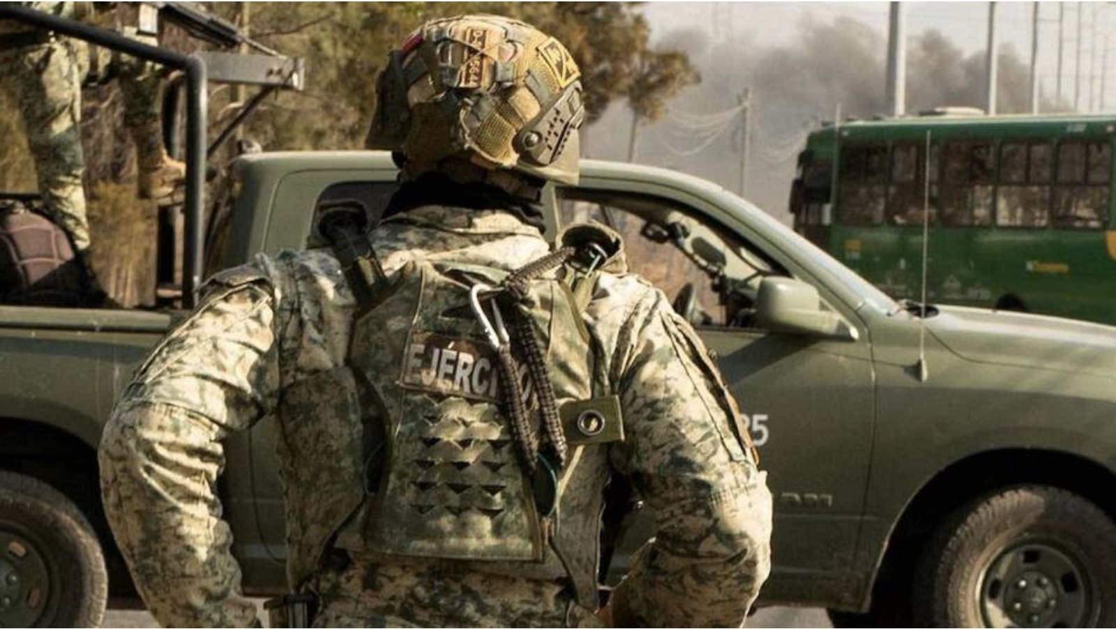 El ejército mexicano patrulla por una carretera tras el operativo que acabó con la vida de El Mencho.