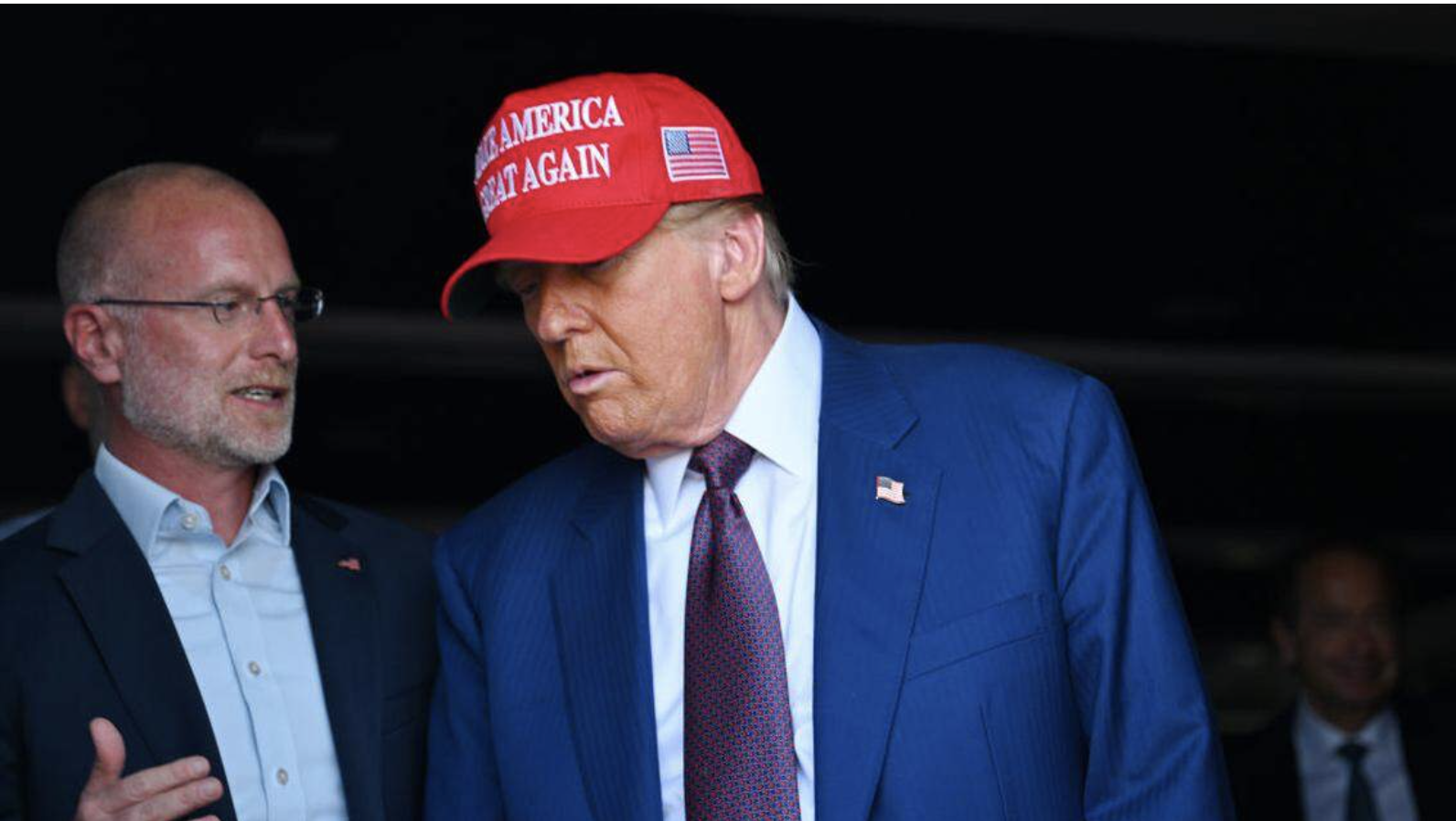 El mandatario de Estados Unidos, Donald Trump, conversa con el presidente de la Comisión Federal de Comunicaciones, Brendan Carr, el 19 de noviembre de 2024 en Brownsville, Texas.