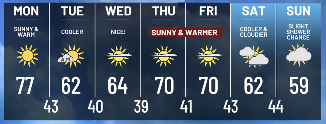 Siguen las temperaturas por encima de los 70 grados durante este lunes, luego refrescará el martes