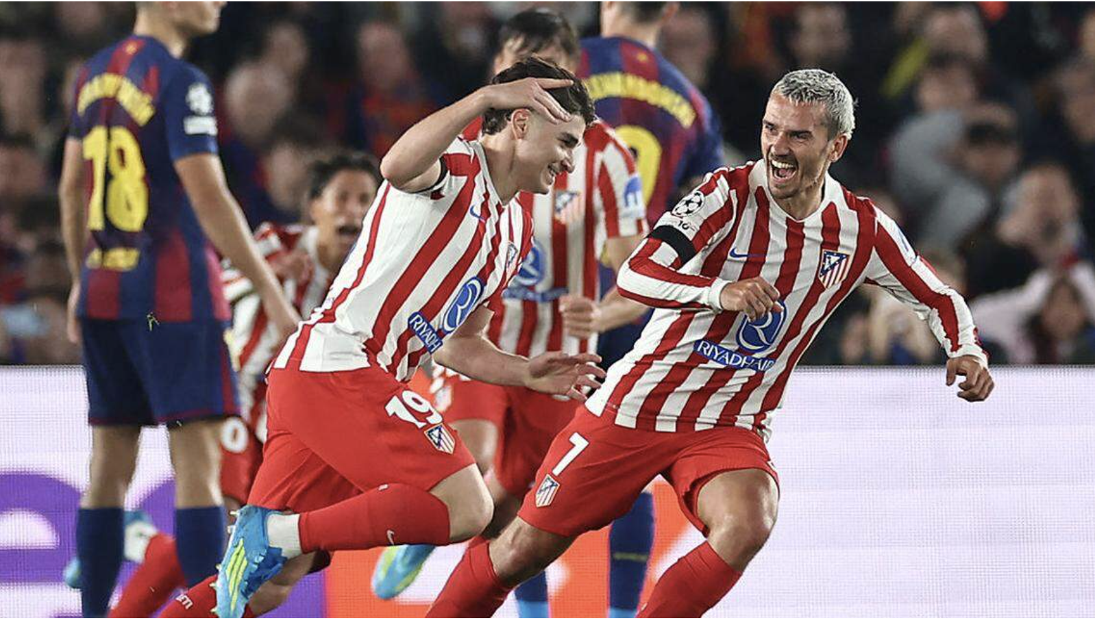 BARCELONA – El Atlético de Madrid ganó este miércoles al Barcelona al imponerse 2-0 en la ida de cuartos de final de la Liga de Campeones, apoyado en su superioridad numérica tras la expulsión de Pau Cubarsí (44’).