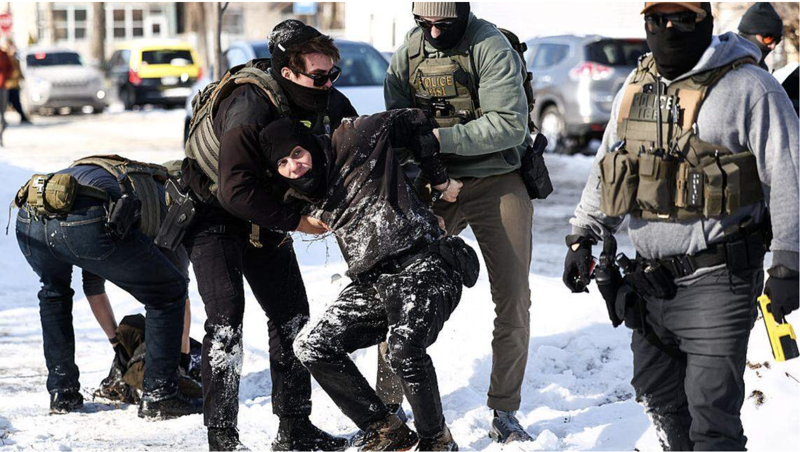 Agentes federales detienen a un hombre que protestaba en contra de las redadas migratorias de la Policía de Inmigración (ICE) y la Patrulla Fronteriza (CBP), el 3 de febrero de 2026, en Minneapolis, Minnesota.